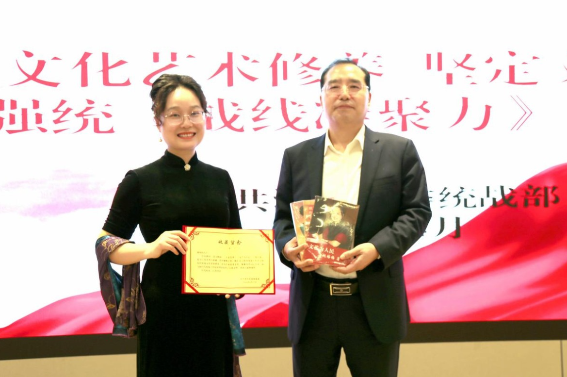 授课结束后,姚梅梅老师为县委统战部捐赠了《说文解画》、《大美芳华》、《文艺为人民》三部文艺理论纪实专著,助力统战文化建设。