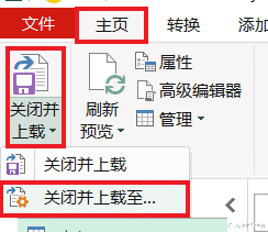 8. 选择任务栏的“主页”-->“关闭并上载”-->“关闭并上载至”