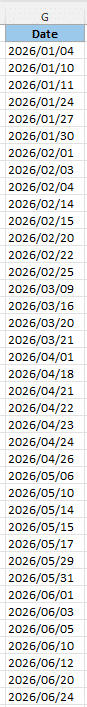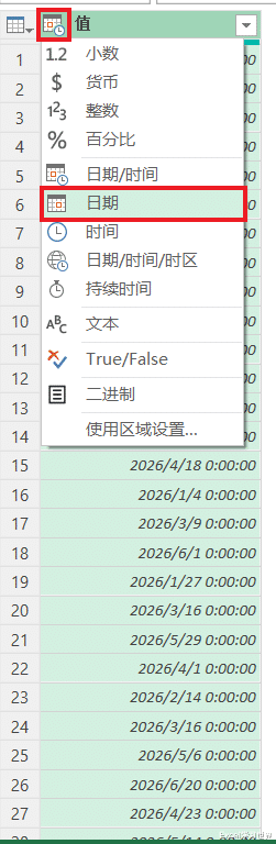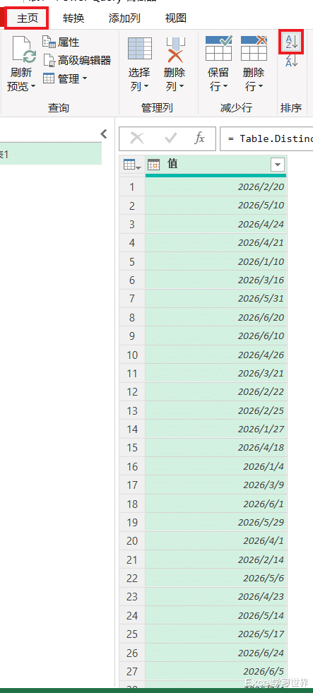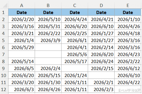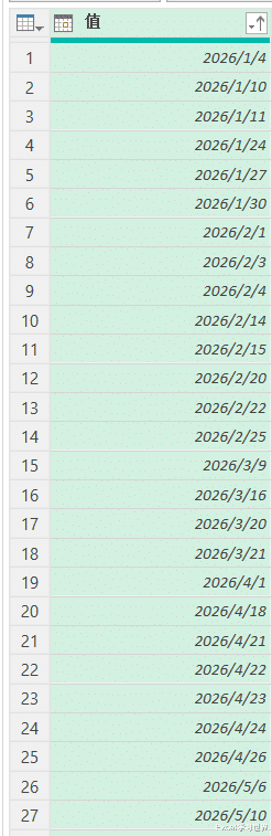 将下图 1 中的日期去重后按升序排成一列,效果如下图 2 所示。