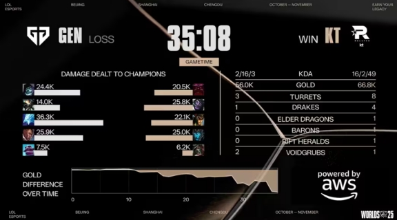 2025年11月1日,英雄联盟全球总决赛首场半决赛的赛场上,一场激烈的对决吸引了无数玩家的目光。这是LCK赛区一号种子GEN与三号种子KT之间的LCK内战。赛前,大部分媒体人都预测GEN会轻松获胜,在24位媒体人的预测中,仅有3人认为KT能赢,GEN晋级似乎是板上钉钉的事。
