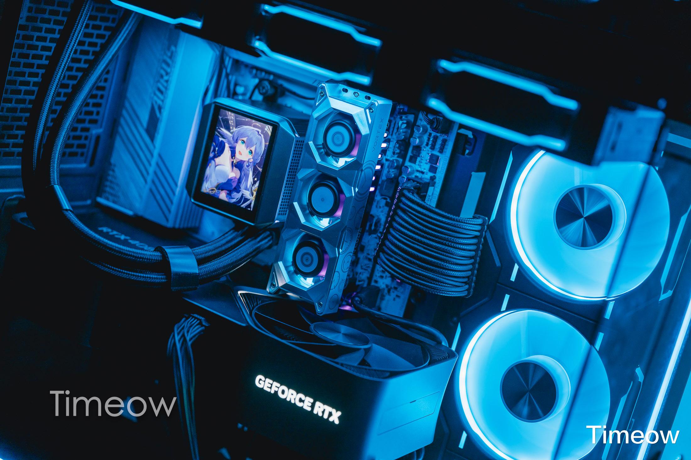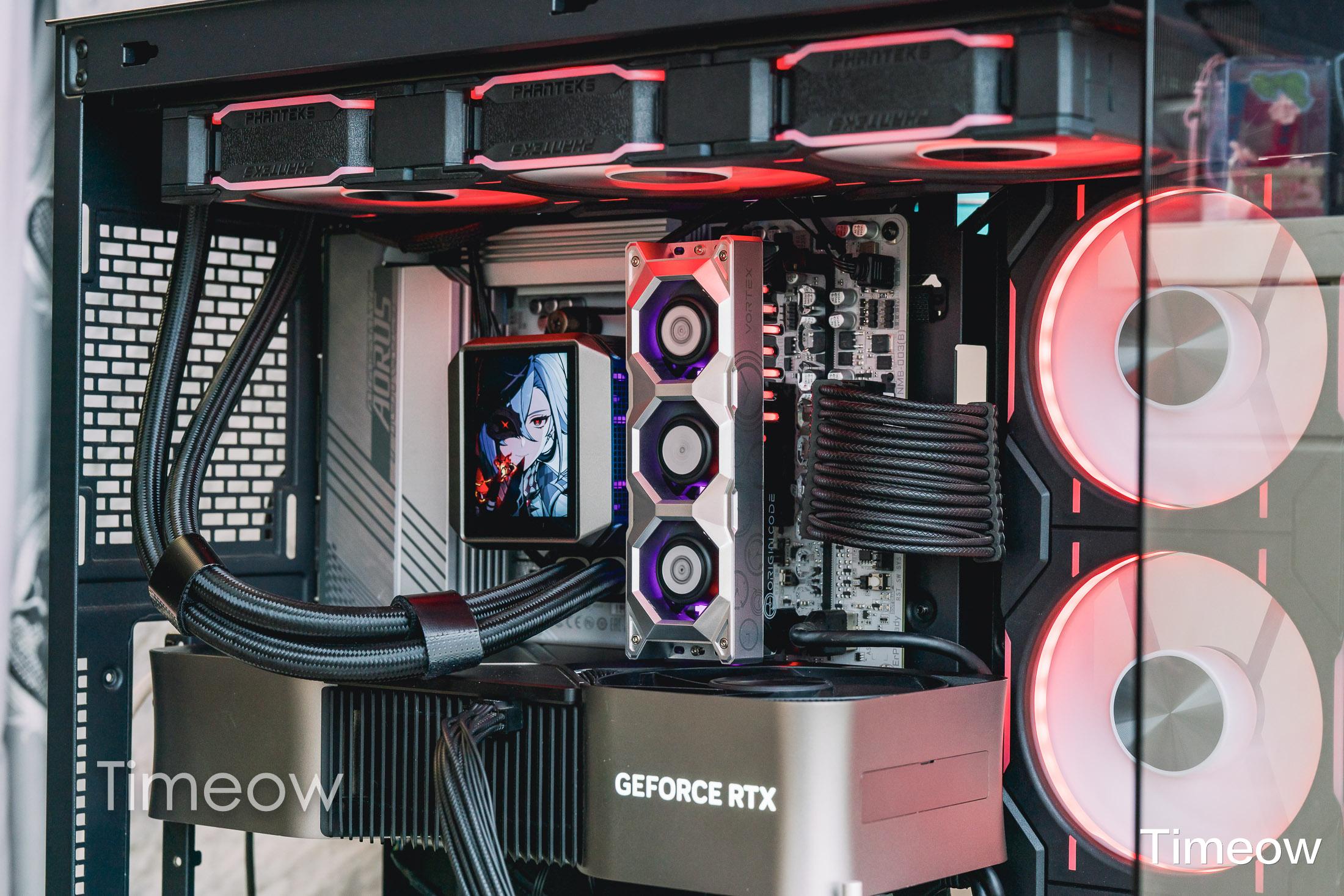 散热器表面的反光也挺有味道,与白色主板搭配,呈现了与纯RGB不同的赛博感。