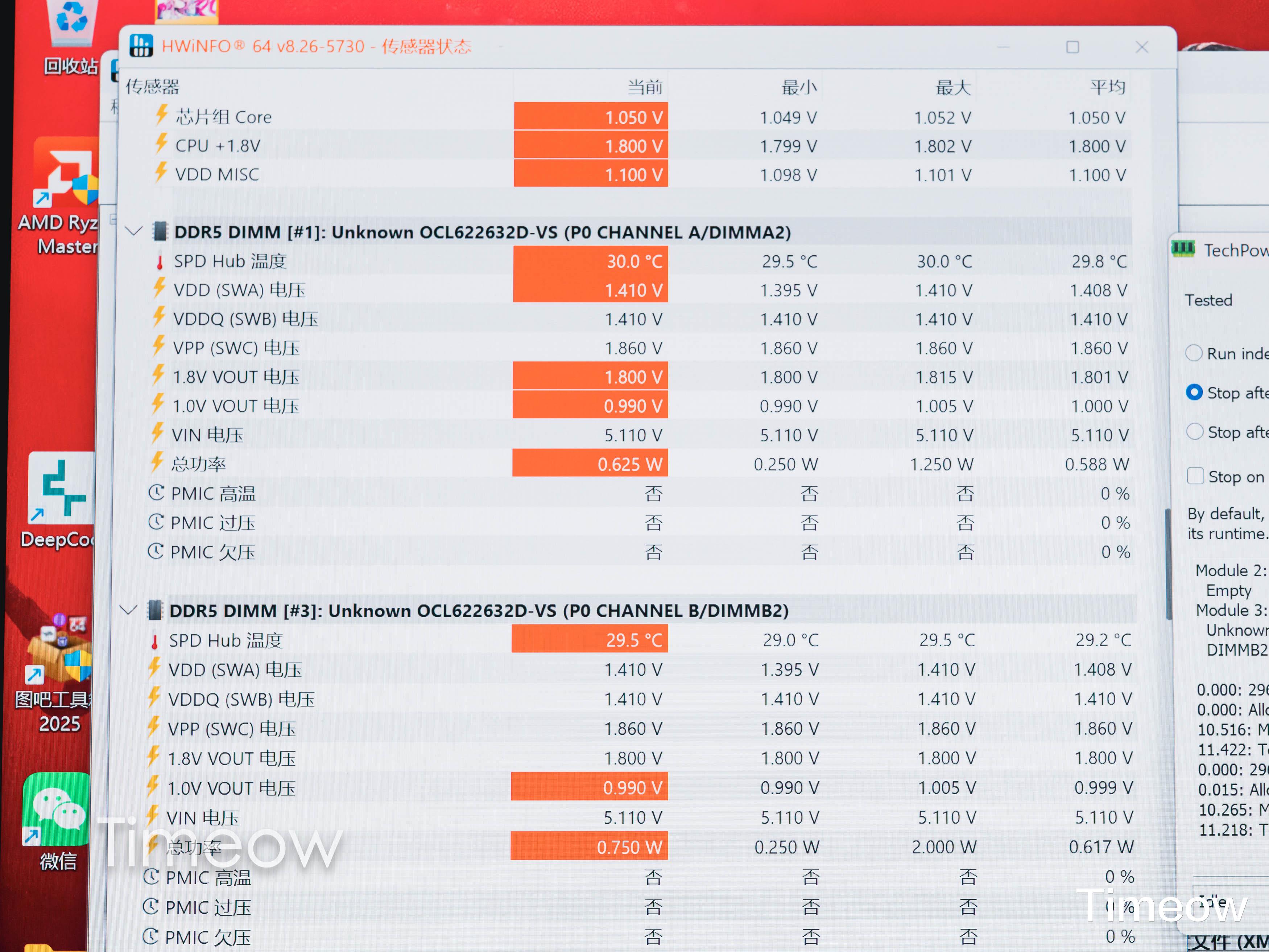 在8000MT/s超频模式下跑内存测试,无风扇状态下,内存的温度基本在50度左右,整体温度不算特别离谱。