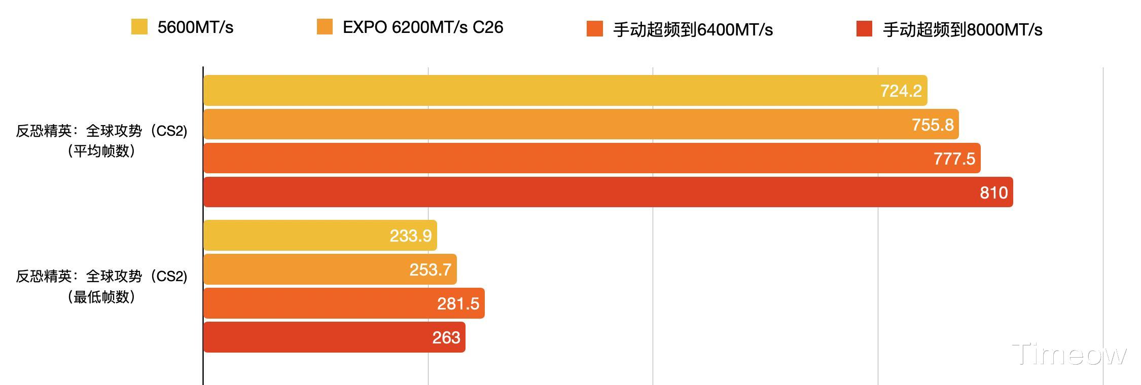 在这类较早的3A游戏大作中,当频率达到EXPO 6200MT/s时,游戏的帧率就趋于稳定了,超频至6400MT/s或8000MT/s,游戏性能都为最佳。