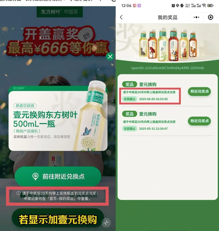 案例:东方树叶茶饮夏季促销期间,瓶盖内印二维码,扫码有30%概率得“免费再饮一瓶”电子凭证,门店扫码即可核销。