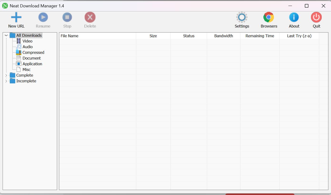 等待一会后,点击“Finish”便可结束安装。若勾选了 “Launch Neat Download Manager” 选项,会自动运行 NDM,运行界面如下: