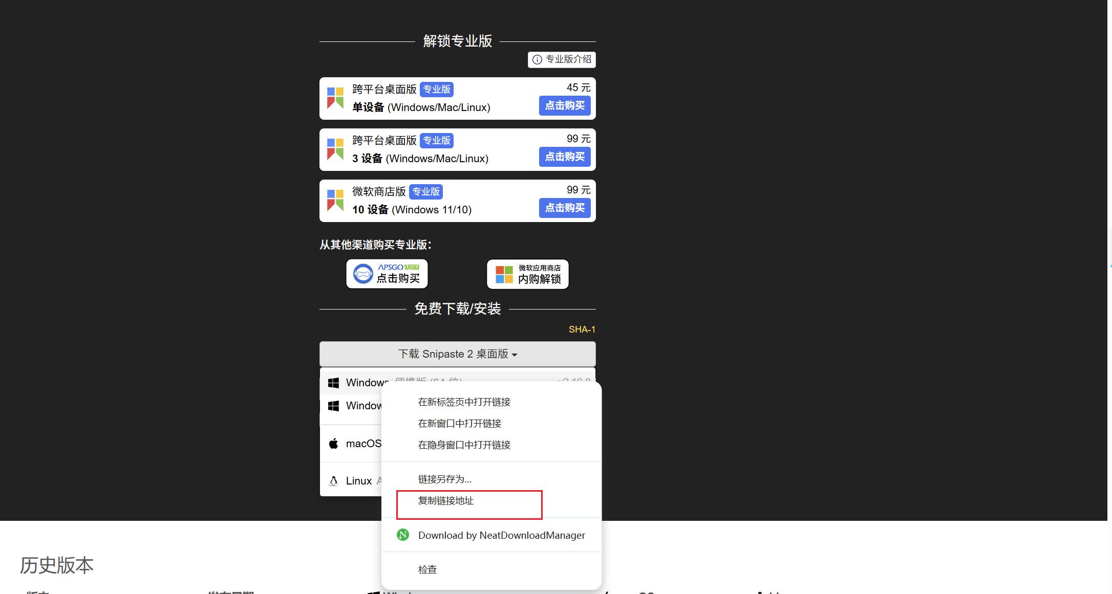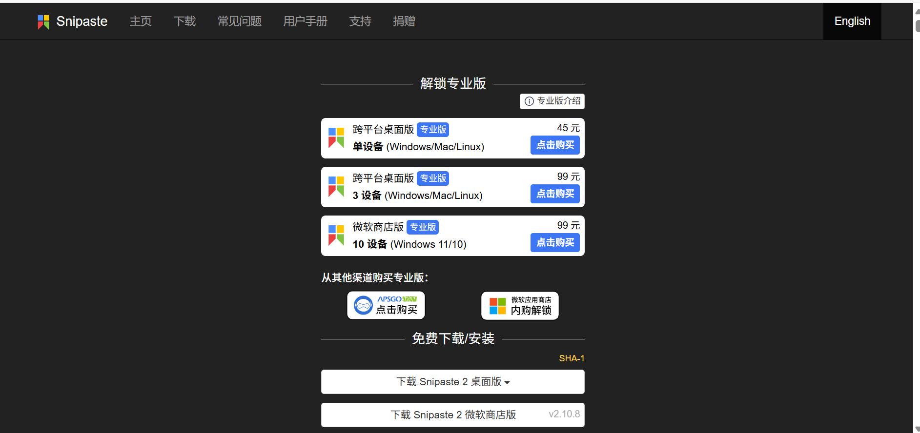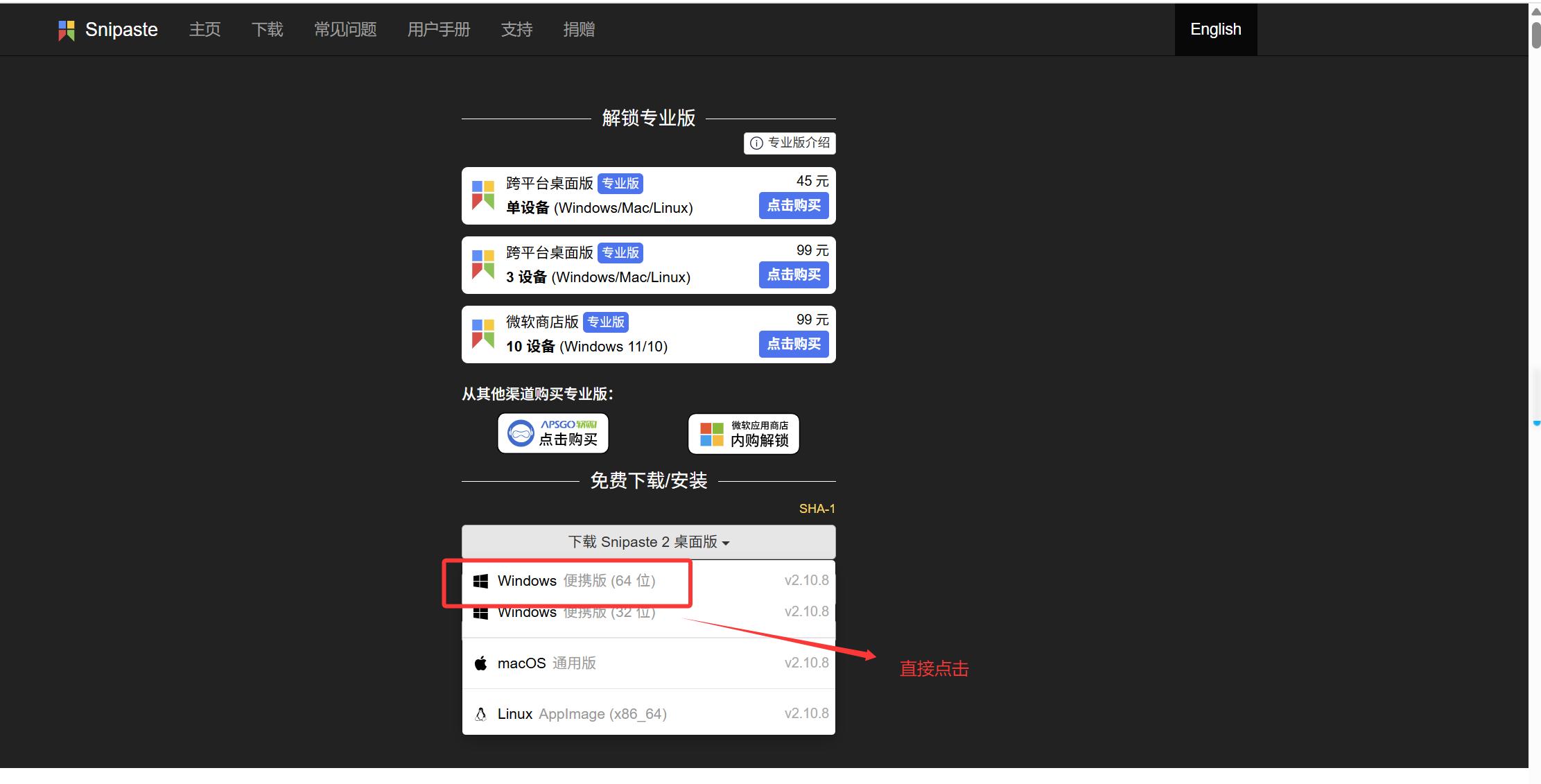 仍以下载Snipaste为例,打开 Snipaste 的下载页面: