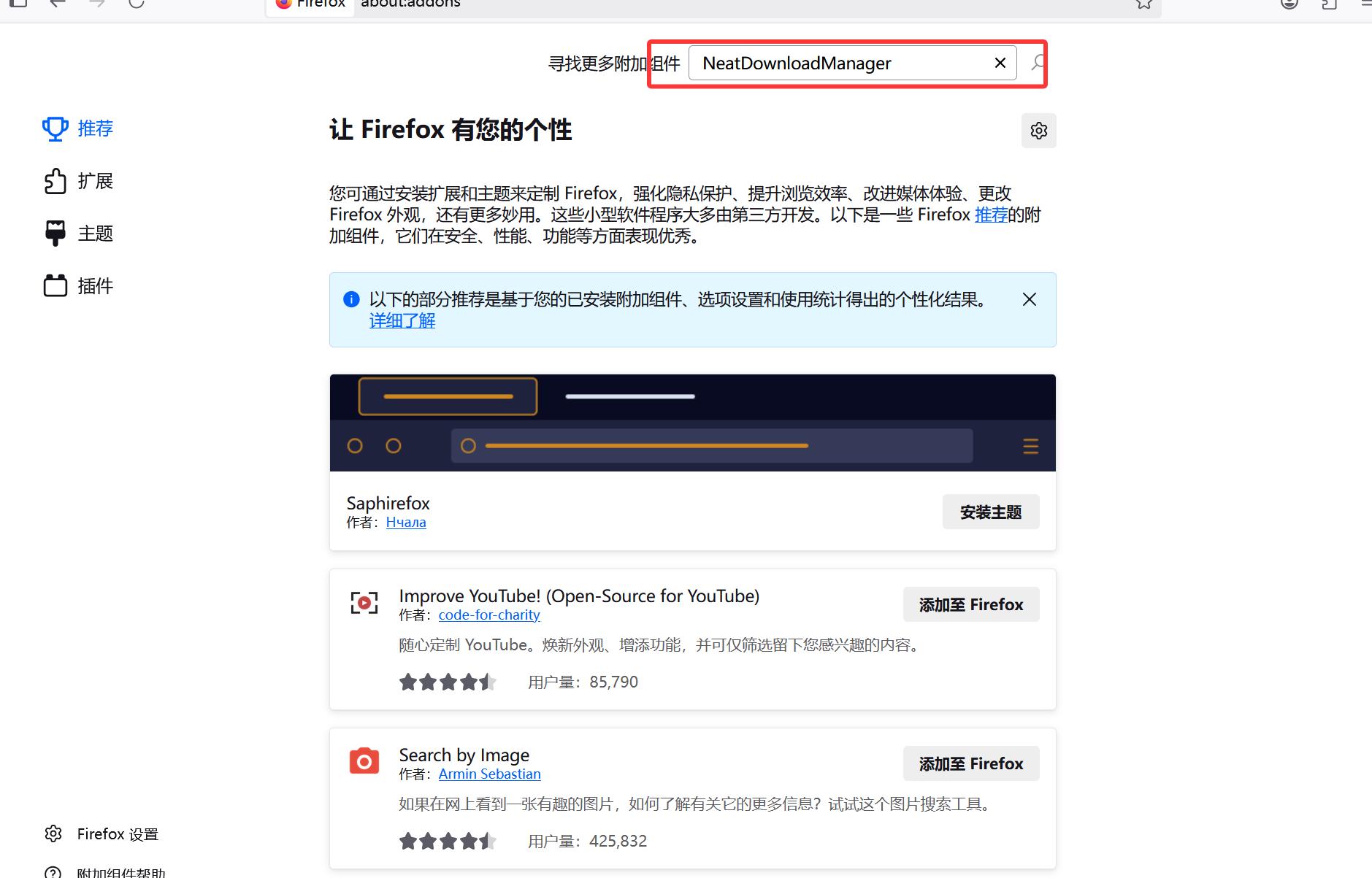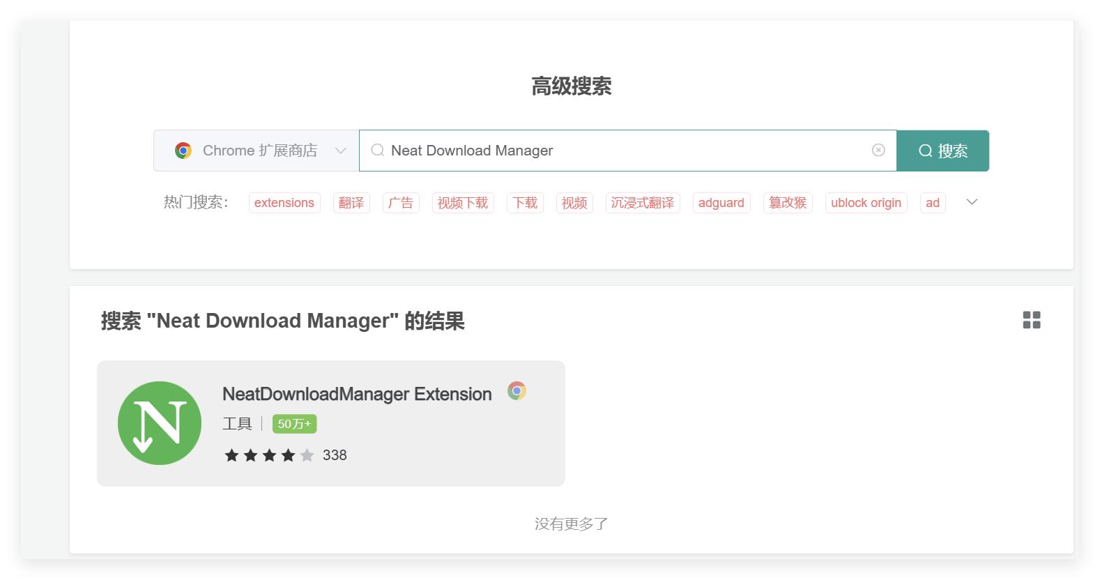 点击“Enter”确认后,在展示的查询结果中选择“Neat Download Manager Extension”即可,此处为查询结果的第一个: