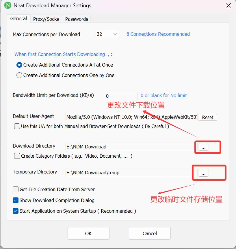 接着分别选择 “Download Directory” 和 “Temporary Directory” 旁边的三个原点来修改文件存储地址: