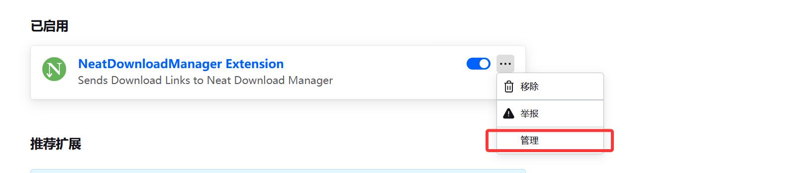 完成上述步骤后已能基本使用 NDM 下载,但每次都需复制下载链接,并不是那么便捷。解决方式是为浏览器安装对应的插件,从而能使 NDM 自动识别下载链接并下载。下面仅介绍常见的三款浏览器的插件安装,其余浏览器大家自行探索。