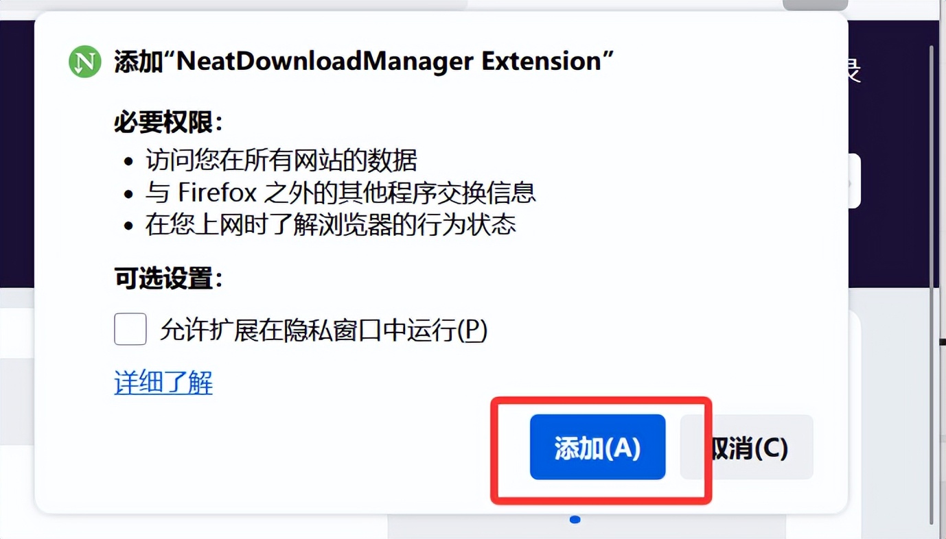 点击插件并添加到 Firefox: