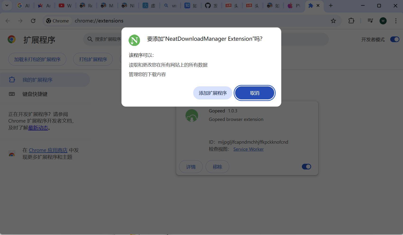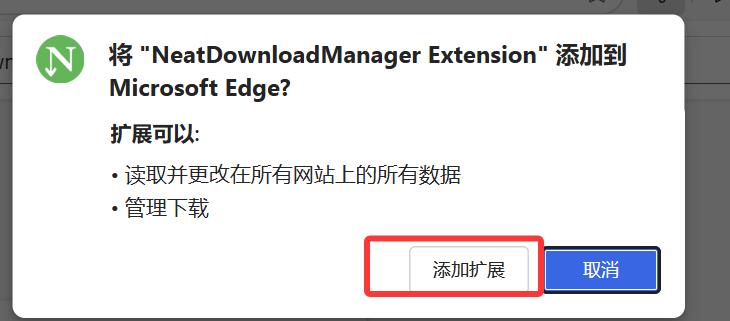 接着将下载的 NDM插件安装包拖入该页面,便会自动弹出安装提示: