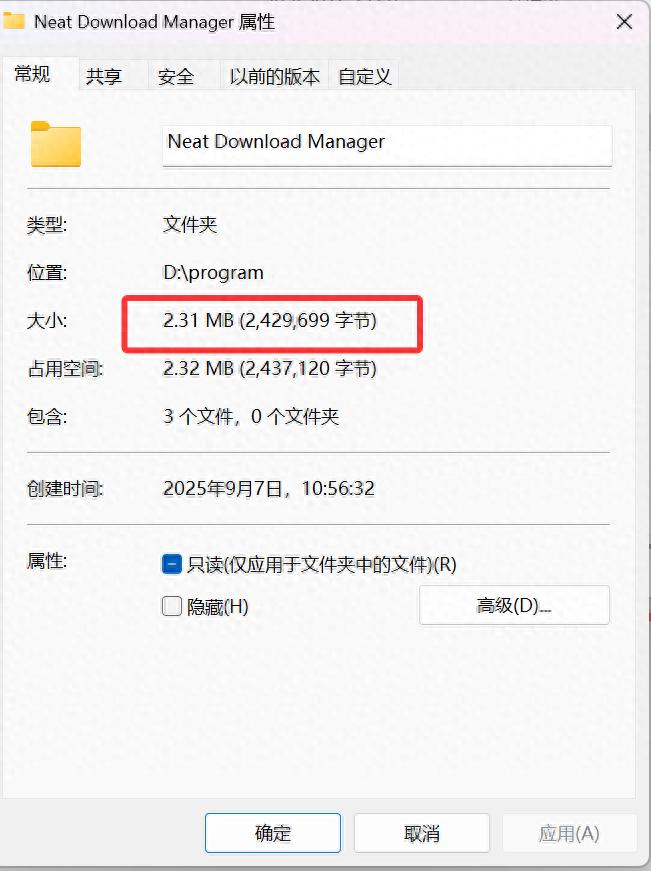安装后的文件目录所占空间大小: