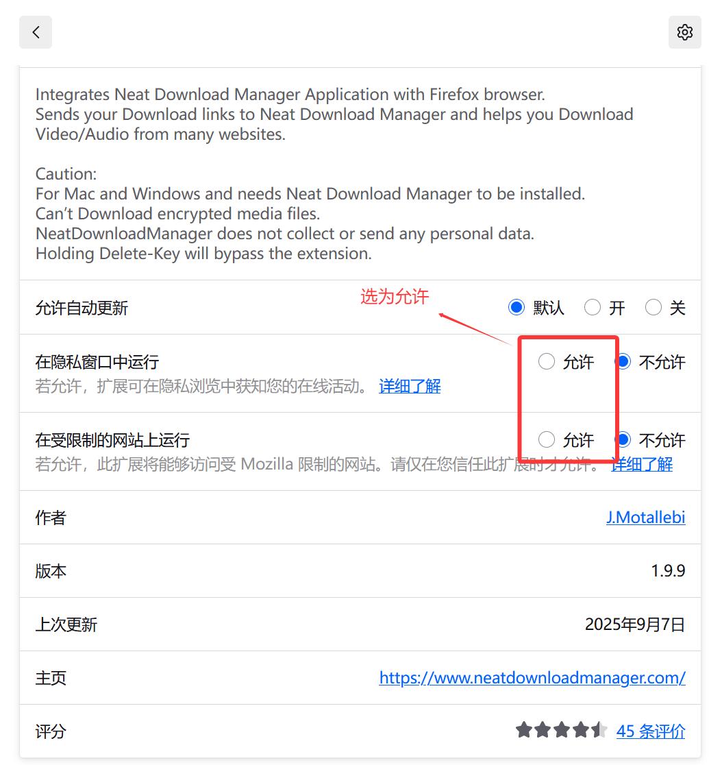 接着按情况勾选即可。若不勾选,则在某些网站中便无法自动识别下载链接。是否勾选,视情况而定。