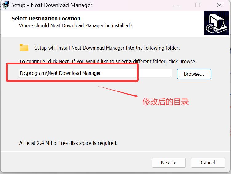 此处需修改安装目录(C盘空间充足者可忽略该步骤),修改后如下: