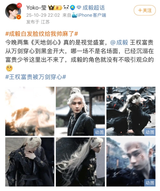 自《天地剑心》开播以来,成毅就用王权富贵这个角色不断带给观众惊喜。从最初恪守家规的“道门兵人”,到如今为爱反抗、为众生执剑的觉醒者,每个阶段的转变都被他演绎得层次分明。特别是在万剑穿心这场戏中,他将角色的挣扎、痛苦、决绝和觉醒完美融合,让这个原本可能流于表面的英雄形象,变得有血有肉,令人信服。
