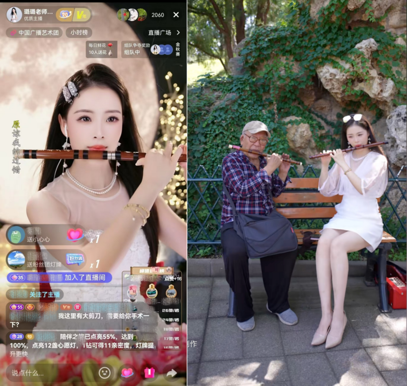 中国广播艺术团演员盛璐璐,通过竹笛演奏吸引超260万抖音粉丝。2025年元旦,有家长在“连麦”时提出希望盛璐璐指点孩子卡了两个多月的吐音技巧(一种吹奏乐器演奏技巧),盛璐璐用将近二十分钟,从口型、气息到舌尖位置,在直播间像面对面一样带着孩子练习。当孩子吹出一个清晰的吐音时,家长激动地送上一份直播礼物:“这是孩子的学费,也是我们全家新年第一份开心。”