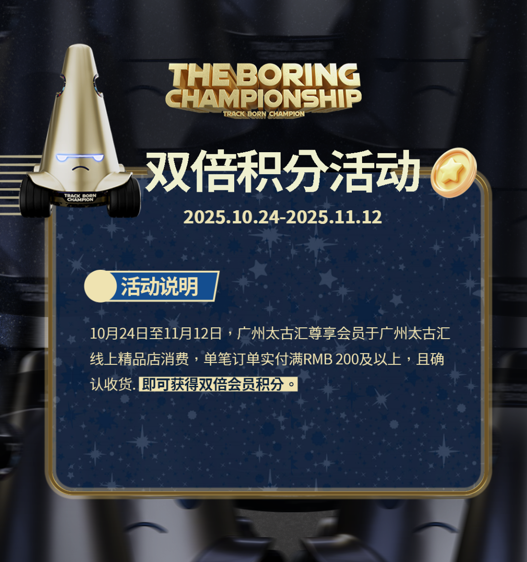 现在,广州太古汇线上精品店推出限时满额赠礼活动,会员更可尊享双倍积分机会。