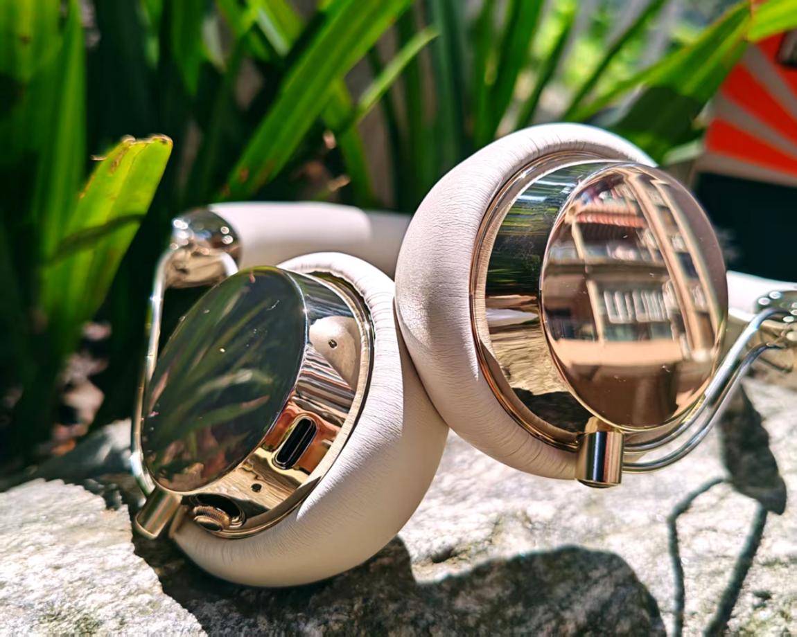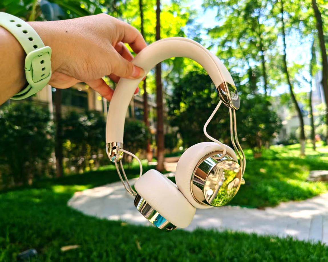 QCY复古头戴耳机Era 7采用 NCVM三重真空镀层技术,耳罩表面呈现冷冽的金属质感,光线折射下泛出枪灰色高光,兼具复古氛围与未来科技感。用户实测反馈:"镜面耳罩像自带打光板,拍照时直接提升照片质感,朋友圈点赞量翻倍。