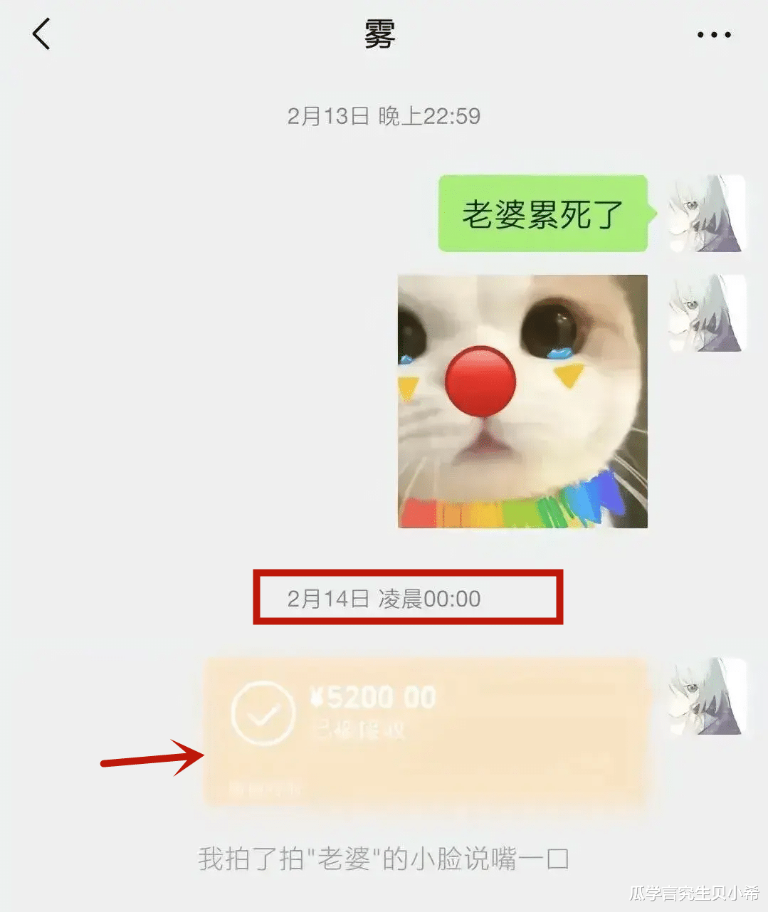 她是睡着了没看到信息吗?那为什么胖猫卡点发5200红包给她庆祝情人节,她却能秒收?