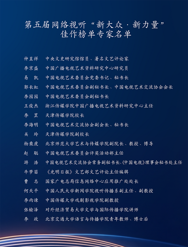 “新大众·新力量”佳作榜单专家名单