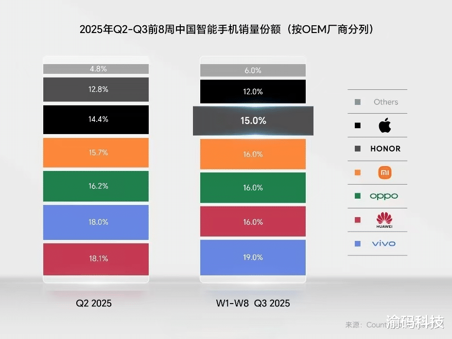 数码 I 渝码科技2025年9月23日,根据全球知名市场研究机构Counterpoint最新发布的数据,荣耀在中国智能手