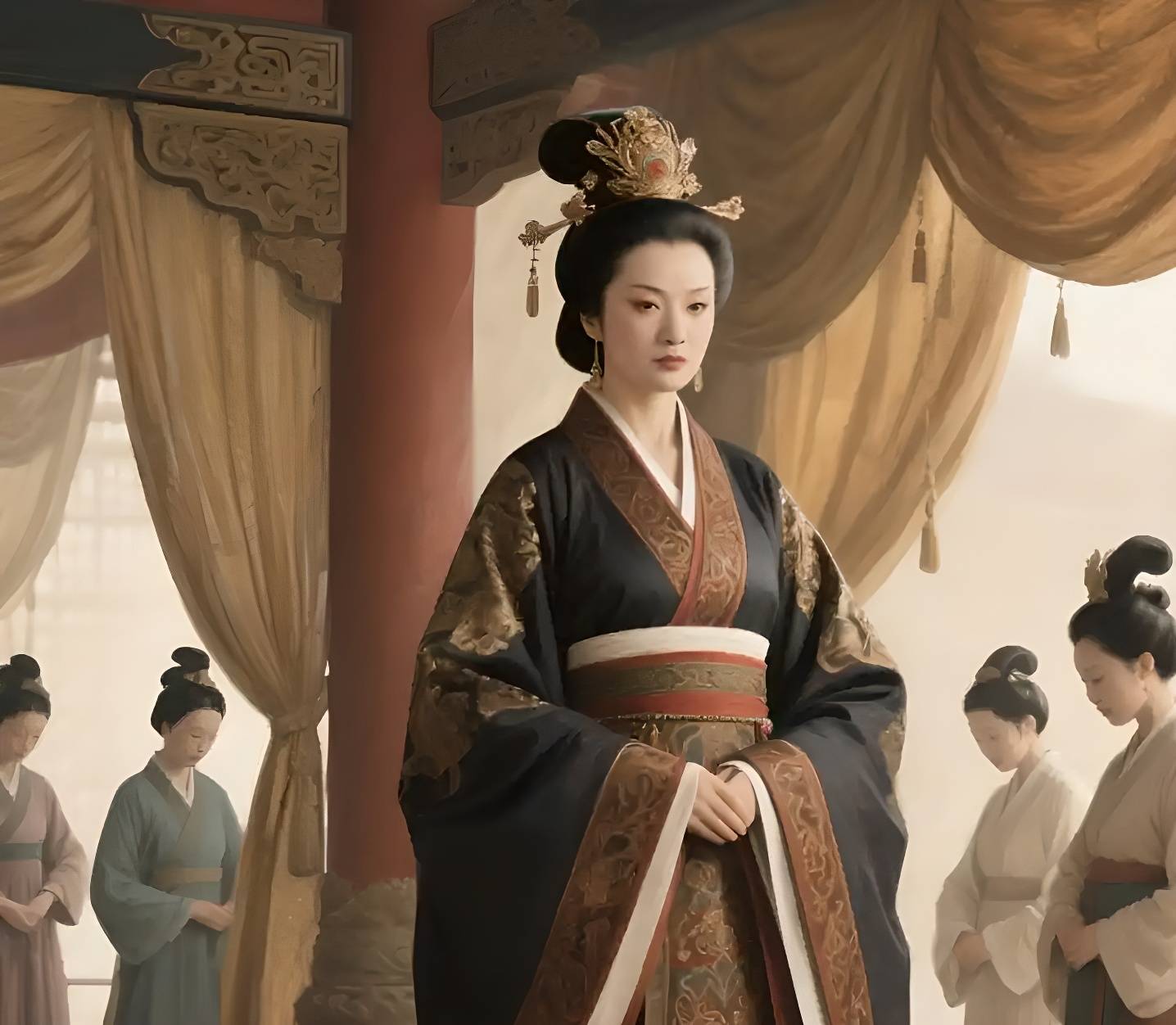 我只知道,在史书那些冷冰冰的字缝里,偶尔还能看见吕媭的影子。她站在鸿门宴的帐外,等着樊哙出来;她坐在吕后的床边,听姐姐说那些不能对人说的心事;她站在吕禄面前,气得浑身发抖,骂他是废物。