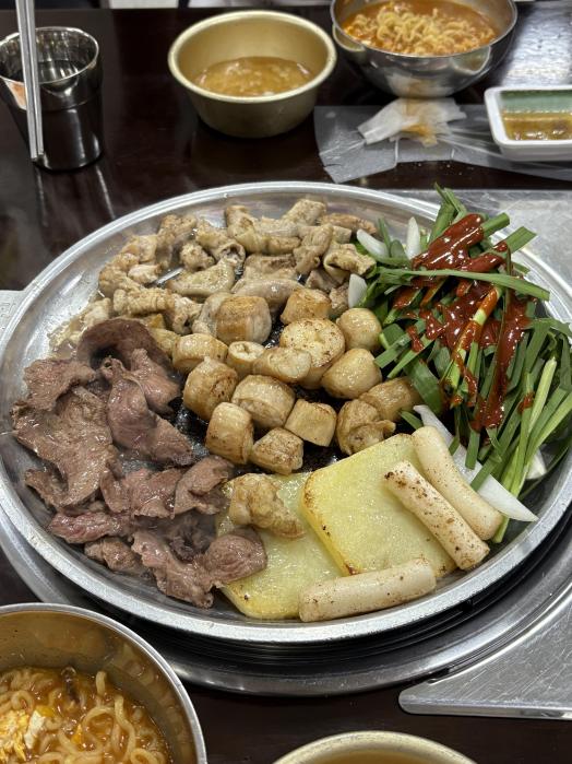 阿姨开的烤牛肠老店,他家牛肠挺大的,烤得焦焦的贼香,里面还有小肠、生拌牛肉里面有梨丝贼好吃!