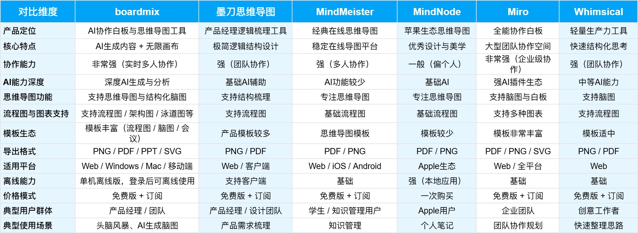 如果你看重性价比和国内环境使用流畅度,boardmix 和墨刀是目前的国货之光;