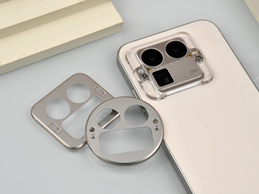 真我GT系列一直以“敢玩”著称,而GT8 Pro这次干脆把“玩”的精神贯彻到了硬件层面——推出了可更换的相机模组。官方称之为“机械拼装设计”:用户可以在标准圆形和“机能罗伯特形态”之间自由切换,甚至可以卸下后盖形成“透明魔方”版本,露出内部结构,科技感拉满 。