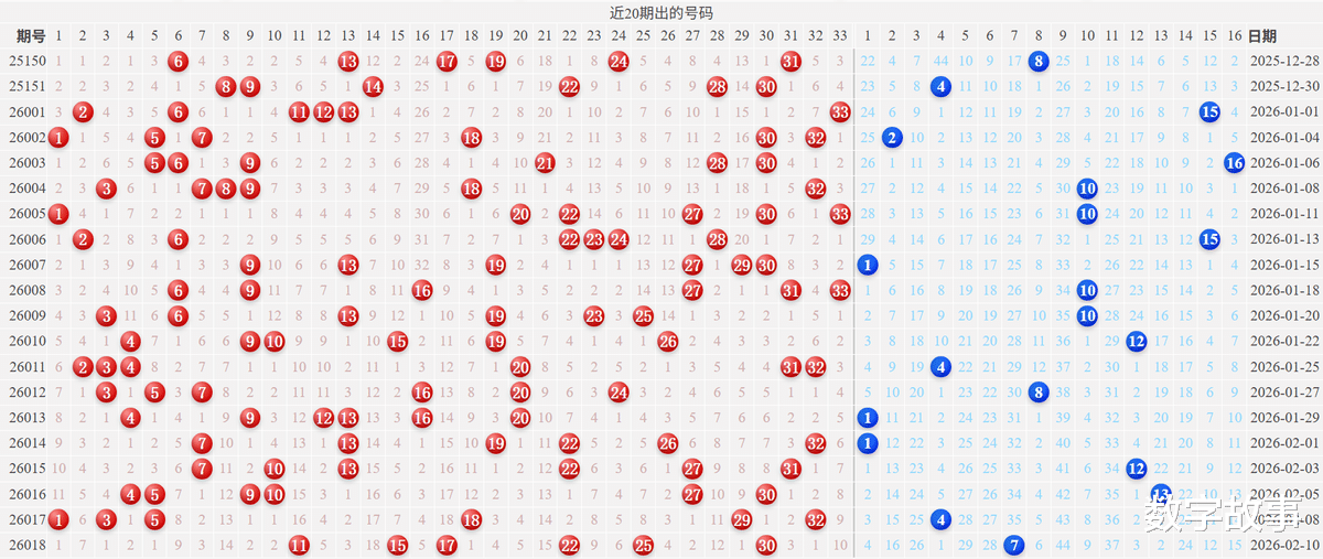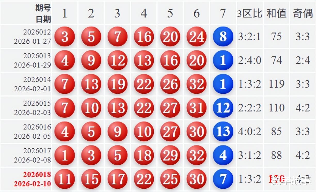 双色球2026018期红号在过去是否出现过?双色球2026018期红号: 11-15-17-22-25-30经查,历史上没有出现过与这一期6个红号一样的,5个红号一样的有1期,如下: