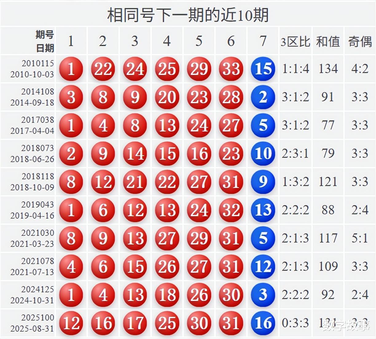 相似号下一期的近10期统计: