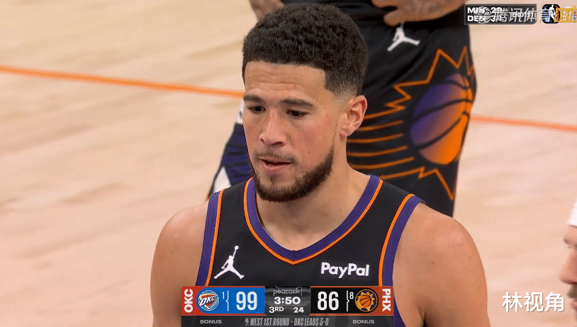 第三节,切特三分命中,布克中投得手,这是布克本场第一个运动战进球,太阳想翻盘,布克这个点必须爆发才有希望。