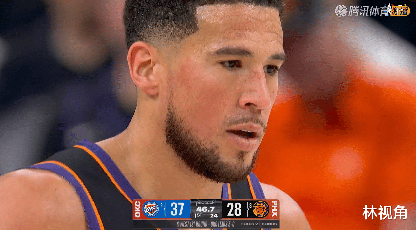 37-33,首节结束雷霆暂时领先太阳4分,布克打满首节,2投0中,依靠罚球得到两分,另外还有4次失误,布克这几场比赛持续低迷,对不起顶薪身价了。