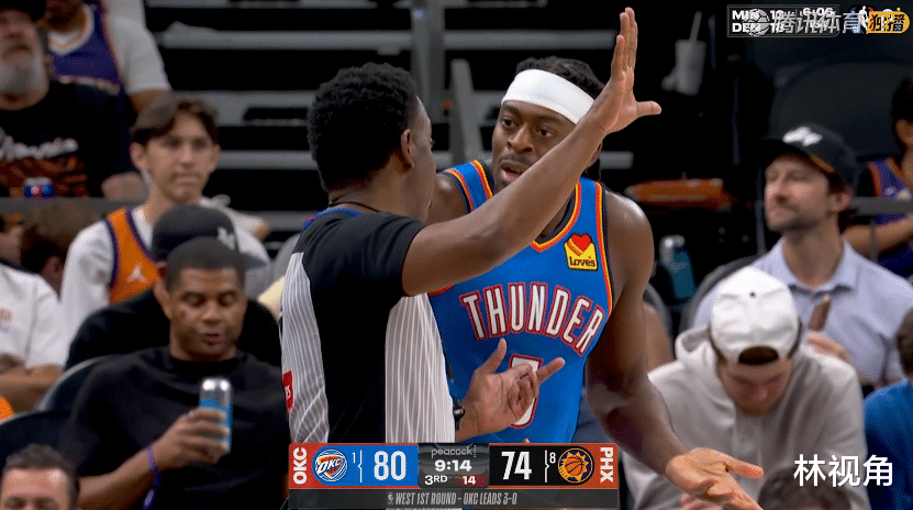 亚历山大歇了将近半节回到场上带队,上来就造杀伤罚球,布克也造杀伤罚球回应,华莱士三分命中,亚历山大上篮打进,雷霆一波小高潮,将分差扩大。
