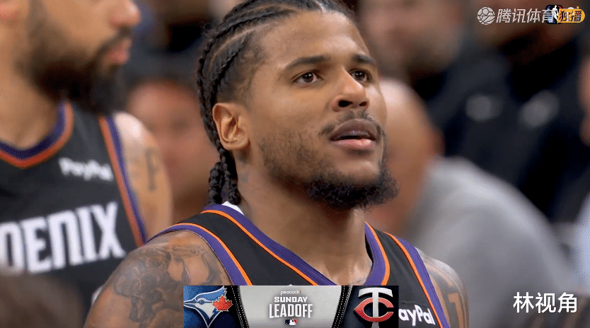 这一节后半段,太阳打出一波小高潮,随着杰伦格林三分命中,太阳暂时取得7分领先,打停了太阳,这也是杰伦格林本场命中的第一记三分,此前外线5中0手感冰凉。