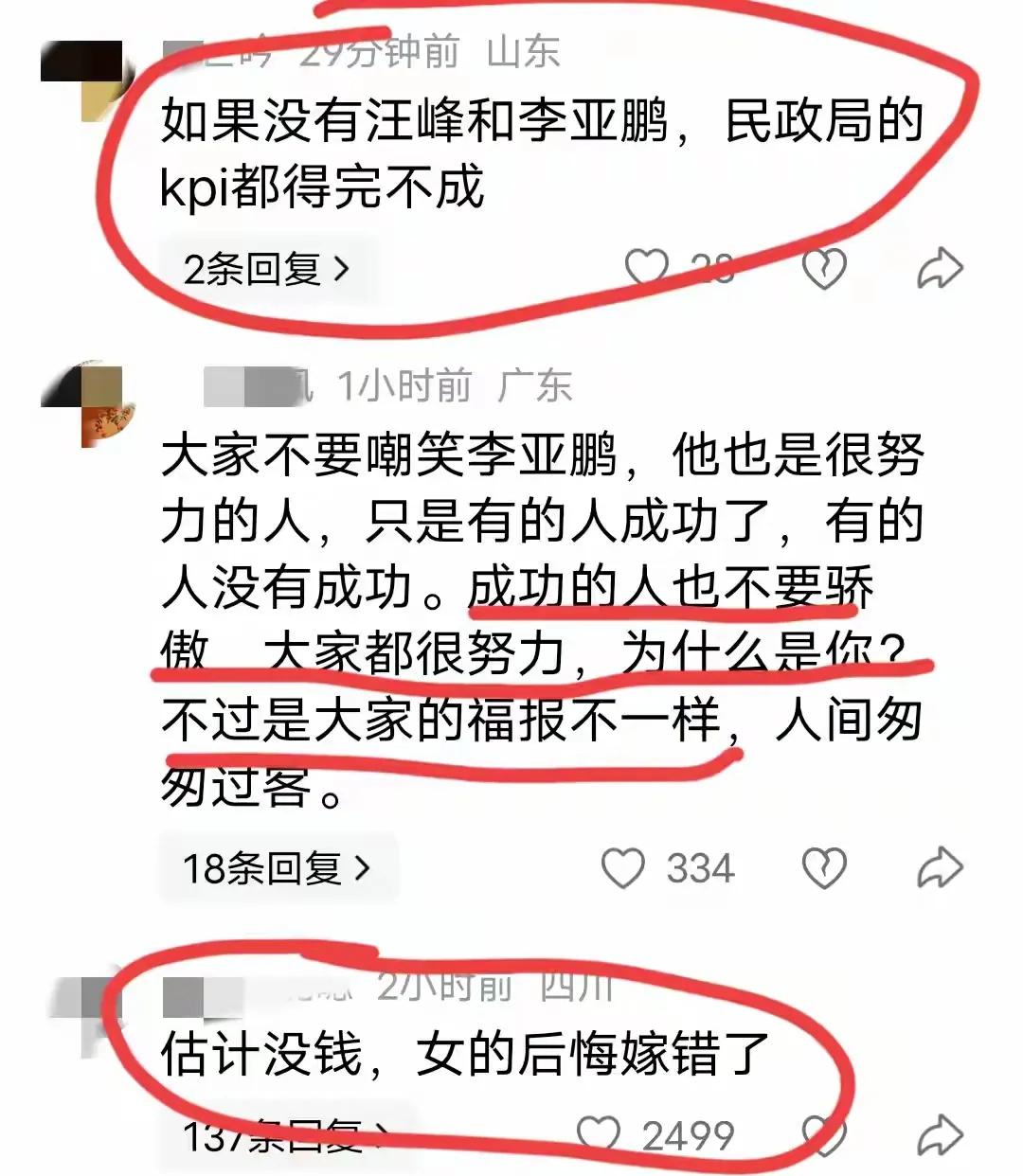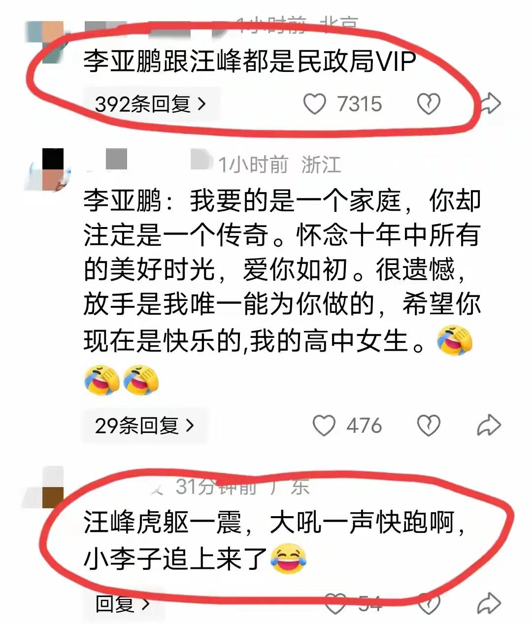 网友的“拉踩式调侃”很绝:汪峰在摇滚圈没怕过谁,在“娱乐圈婚姻连续剧”里,栽在了李亚鹏手上。之前大家笑汪峰是“婚姻处主任”,现在李亚鹏离婚,评论区喊“俩位凑个‘婚姻处领导班子’,一个主任一个副书记,稳了!”
