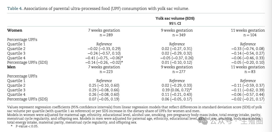 (父母超加工食品摄入与胎儿卵黄囊关系表)
