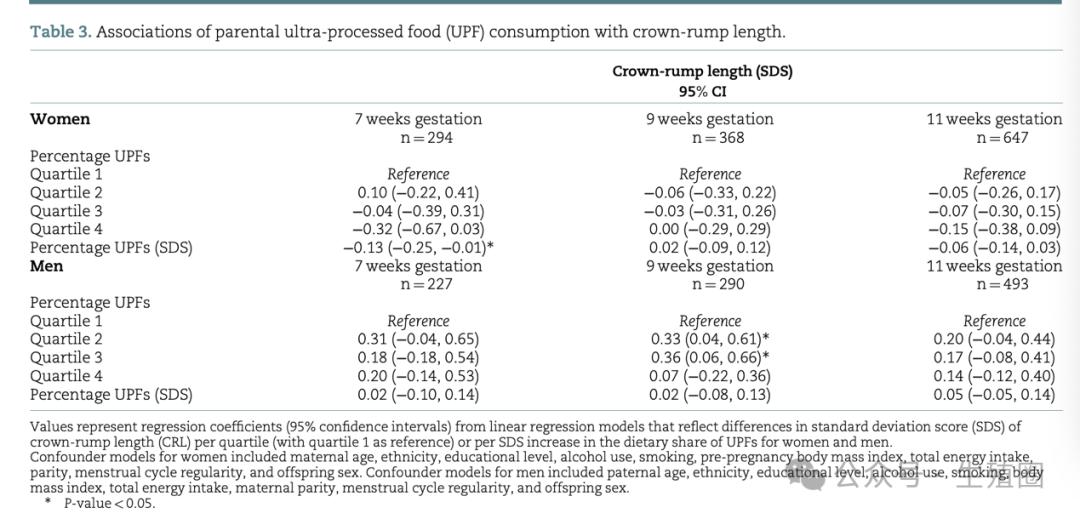 简单说,这项研究发现,超加工食品父亲摄入多,主要影响怀得上;母亲摄入多,主要影响在最早阶段长得好。