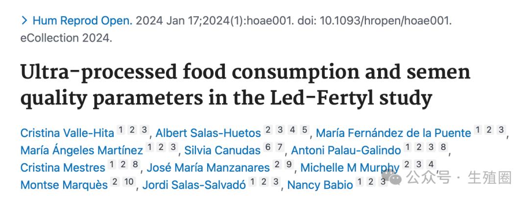 Ultra-processed food consumption and semen quality parameters in the Led-Fertyl study. Hum Reprod Open. 2024 Jan 17;2024(1):hoae001. doi: 10.1093/hropen/hoae001.
