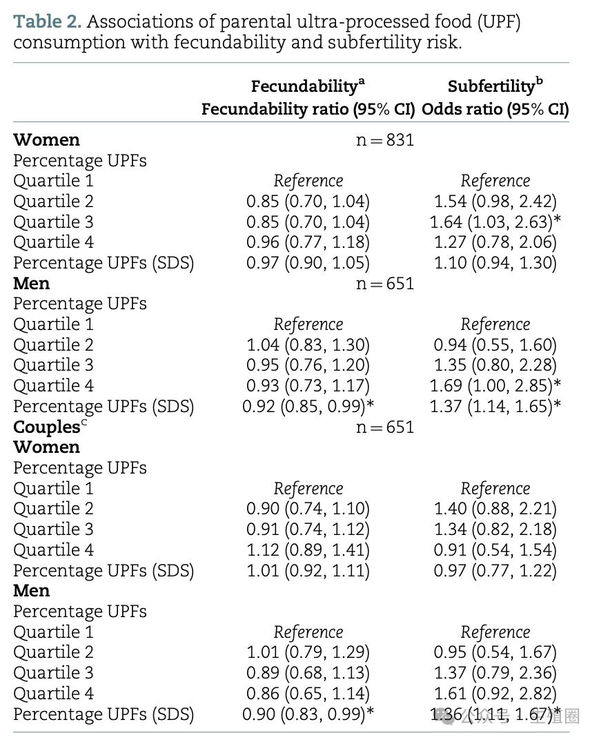但是也是上个月的一篇文献,采用的是美国育龄女性饮食数据,结果显示那些报告自己不孕的女性,她们吃超加工食品的比例显著更高。