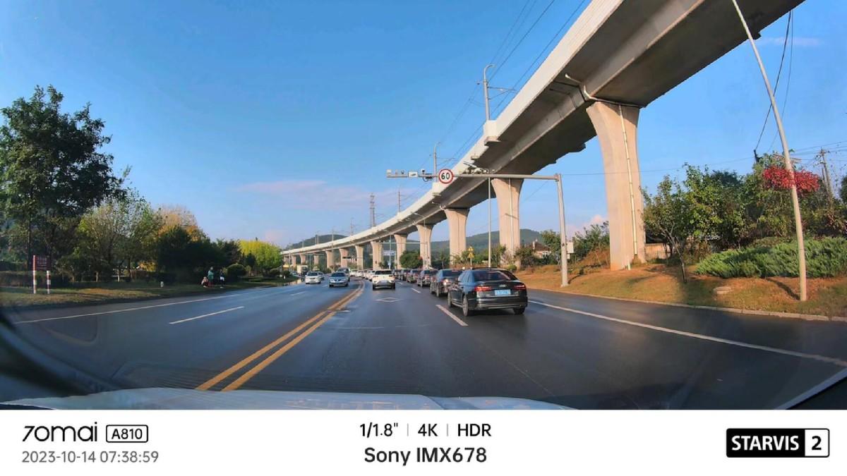 其实之所以选择全新的70迈 A810行车记录仪, 除了更为人性化的APP交互解决方案,更多的考虑到了这一次其图像传感器采用了索尼最新一代800万像素旗舰Sensor IMX678,更大地提升了感光性能,夜视能力也更强了,对于自驾出游偶尔开夜路的时候就很有帮助了。