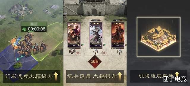 此外,城内设施和城外建筑的建造升级时间减少50%,征兵速度提升25%,土地经验和战斗经验获取全部翻倍,主打的就是一个字——“快”。