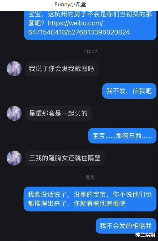 据曝光的私信内容显示,苏苏的朋友曾质问相关人员“杭州房子是否与苏苏合购”,对方明确回应“星耀那套是一起买的”,这一对话成为网传“苏苏出资买房”的核心线索。