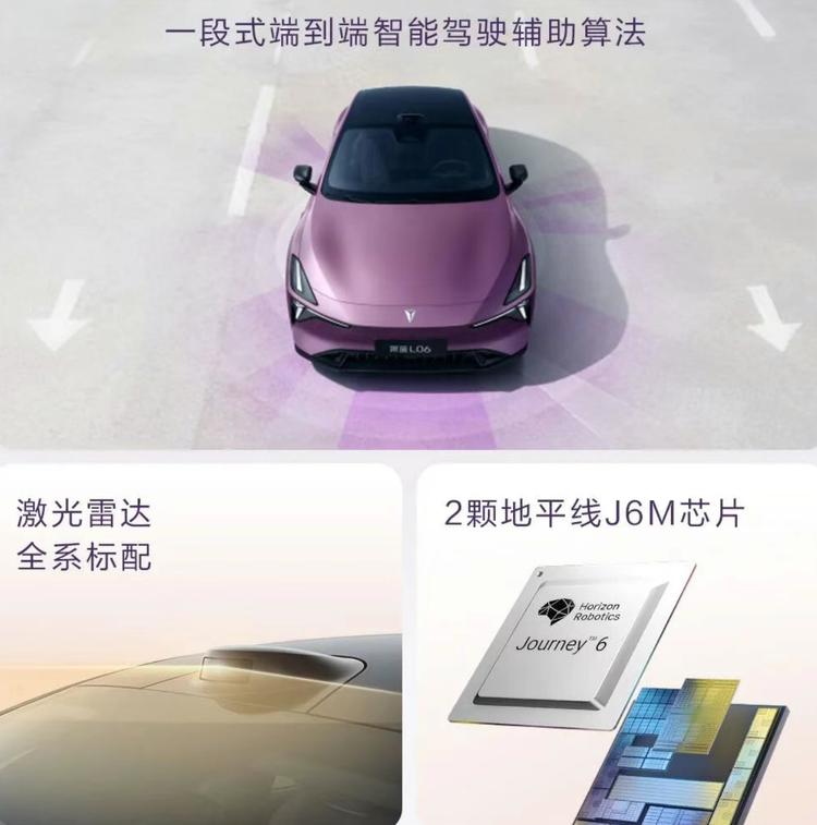 再来看看智驾方面,深蓝L06将全系标配车顶瞭望塔式激光雷达(供应商为禾赛科技),还搭载了2颗地平线J6M智驾芯片,总算力可达256TOPS,车辆拥有双目摄像头、12个超声波雷达、3个毫米波雷达、11颗摄像头的加持,匹配Deepal AD Max全域一段式端到端智驾系统,全系可实现辅助泊车入位、遥控泊车、循迹倒车、辅助变道、信号灯识别、高速领航辅助等功能。