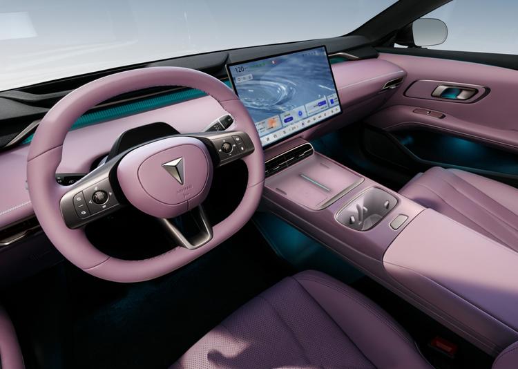 内饰布局颇为简约,但中控台层次感比深蓝L07更强,换上了全新的两幅式多功能方向盘,官方还为车辆设计了一款淡紫色的内饰配色,使得车厢的辨识度更高,且更符合年轻人的审美。