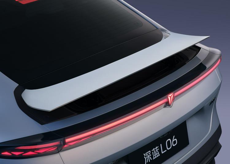 以上是深蓝L06的三大卖点,重新来回顾一下外观,这车采用了深蓝L07类似的设计风格,前脸灯组和下包围样式有所调整,车辆配备了无边框车门、无边框后视镜,门把手采用半隐藏式设计,提供绿色刹车卡钳,尾部经过了大溜背处理,贯穿式尾灯比深蓝L07的更加平直,尾部还搭载有多挡可调电动升降扰流板。