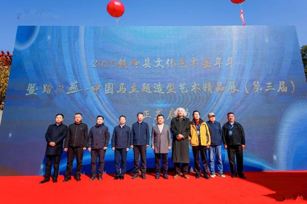 铁岭市政协党组书记、主席冯智,铁岭县委书记常东旭,铁岭县委副书记、县长朱善植,铁岭市文化旅游和广播电视局党组书记周野,铁岭市文联党组书记、主席刘延杰,中国马会书记、秘书长岳高峰,中国美协理论委员会原副主任、《美术》杂志主编、著名艺术理论家王仲,吉林省委宣传部原副部长、吉林日报社原社长、吉林省美协名誉主席易洪斌,中国国家画院研究员、黑龙江省中国画学会会长,黑龙江省美协名誉主席吴团良,中国马会马文化艺术分会执行会长、深圳马术协会文化委员会主席、鸿马艺术馆馆长孙宏伟共同按下启动键,见证2025铁岭文化艺术嘉年华“踏飞燕·中国马主题造型艺术精品展(第三届)”隆重开幕。