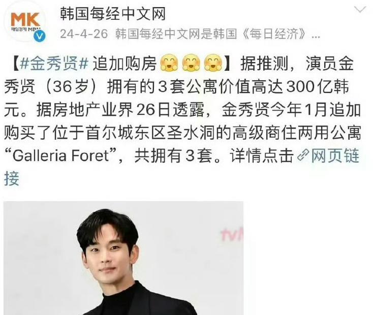 而金秀贤,在催债的同时,却不断购置房产,其名下房产总价值高达300亿韩元。