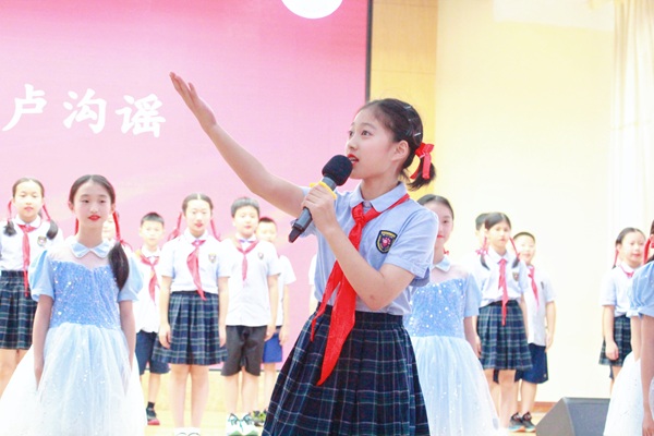 活动现场,抗战革命歌曲联唱率先拉开帷幕,熟悉的旋律唤起在场师生对革命历史的记忆,为整场活动奠定浓厚的爱国主义基调。随后“九三阅兵”优秀战士身着整齐军装,迈着铿锵有力的步伐执行出旗仪式,战士们身姿挺拔、动作标准每一步都尽显军人的威严与庄重。全体人员肃立高唱国歌,传递出强烈的民族自豪感与使命感。珊瑚实验小学党委书记钟敏致辞。