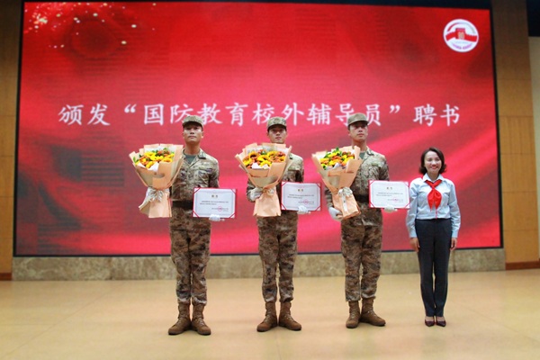 颁发“国防知识思政课校外辅导员”聘书现场。